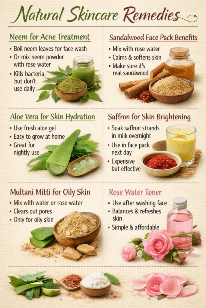 Turmeric for Glowing Skin – everyone talks about this one. Yeah it reduces inflammation and helps fade dark spots and all that. But nobody mentions that if you mix it wrong you just stain your face yellow for no benefit. Don’t use water. Use yogurt or honey. Or if you want to do it properly, use besan (chickpea flour) with milk and turmeric together. That’s what actually absorbs into skin instead of just sitting on top of it looking orange.